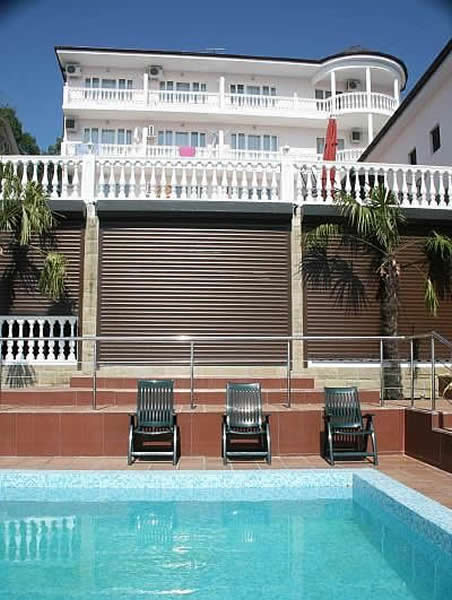 Территория Отеля "Олеся Лоо" представляет собой уютный ухоженный двор с бассейном и кафе. Рядом с отелем находиться аквапарк "Аквалоо".